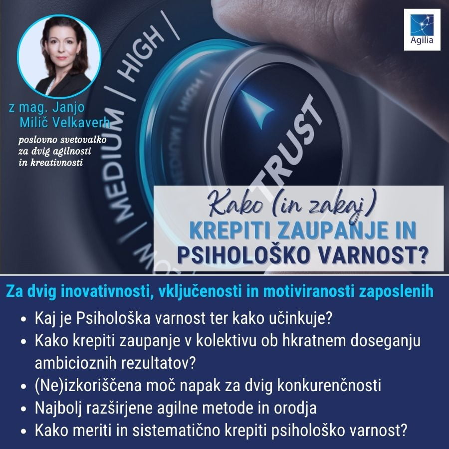 Visoka psihološka varnost daje močan zalet inovativnosti, vključenosti in motiviranosti zaposlenih ter spodbuja učinkovito agilno delovanje v kompleksnem okolju hitrih sprememb.